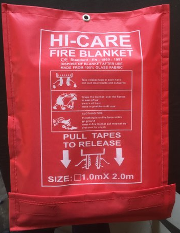 A fire blanket is made from woven glass fiber fabric and a layer of fire retardant film. Fire blankets are powerful pieces of equipment which work by cutting off the oxygen supply of a fire, thereby starving it of one of the three crucial elements it needs to survive and ultimately extinguishing it.